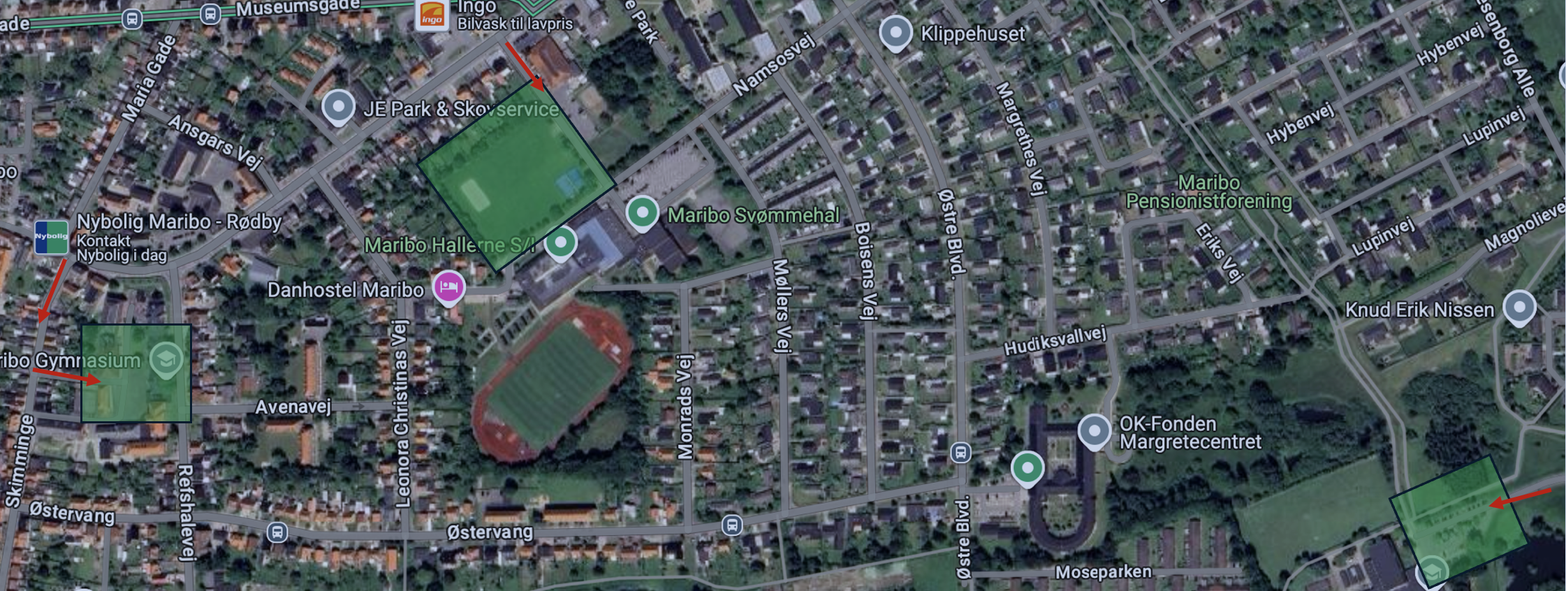 I har også mulighed for at bruge skolegården på Borgerskolen. Indkørsel fra Skimminge 19 A, eller ved Blæsenborg skolen, Blæsenborg Alle 10 – og gå ad stien til Stadion, tager ca 10 min.
